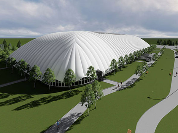 充气膜结构是一种新型建筑结构,是轻型空间结构的一个重要分支,具有丰富多彩的造型,建筑特性、结构特性优越,主要分为张拉膜结构、骨架膜结构、充气膜结构、索桁架膜结构等。膜结构是轻型空间结构的一个重要分支,除丰富多彩的造型外,还有优异的建筑特性、结构特性、和适宜的经济型,因此膜结构的诞生,就迅速在世界各地发展起来。而膜结构建筑主要分为张拉膜结构、骨架膜结构、充气膜结构、索桁架膜结构、张拉整体与索穹顶膜结构。充气膜结构是一个相对密闭的空间结构,与传统空间结构建筑不一样的是,它通过风机向结构内部鼓风送气,使膜结构内外保持一定的压力差,以保证膜结构体系的刚度,维持所设计的形状。同时压力控制系统可使结构维持...
